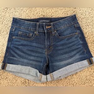 🌹💙Aeropostale • women’s jean low rise midi cuffed shorts • 0 • EUC