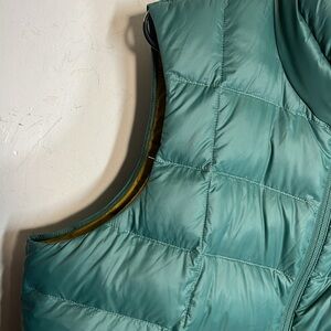 Very clean hardly used down vest. They will put an extra large measures pit to pit 22” / waist 20.” / length (shoulder to bottom) 25”/ 2 front zipper closure pockets as well as two large interior slip pockets. No issues smoke free home.(A)