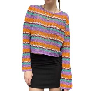 Primark Long Sleeves Crop Blouse in Purple and Yellow