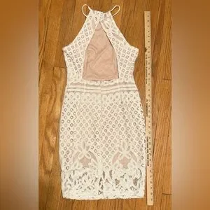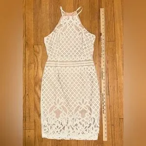 Lulus Steal A Kiss white lace mini dress with attached nude lining. Excellent condition, perfect for graduation, bachelorette, and more!