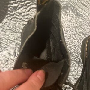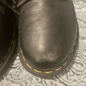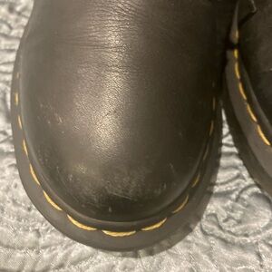 Step out in style with these Dr. Martens black leather boots. Known for their durability and iconic design, these boots are perfect for any occasion. The sleek black color adds a touch of sophistication to your look. Very gently worn, ultra soft leather on ankles.