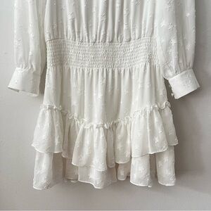Ramy Brook White Sashah Star Pattern Blouson Longsleeve Mini Dress Medium