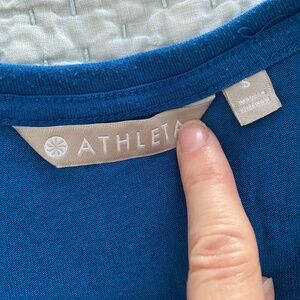 Gently used. Size small. Oversized. Slight pilling. The two vnecks are Athleta cloud light long sleeve. Super thin and lightweight, curved hem and bum covering. All three of these shirts run large as I usually wear a medium, and the small had more than enough room. The third shirt I am not sure what it’s called, but it does have thicker material than the cloud light. Crewneck. Also bum covering and runs large.