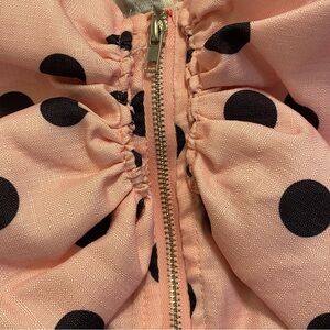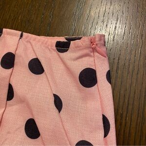 Adorable pink and black polkadot off shoulder corset style top and matching mini skirt from Pretty Little Thing. Top features large bow design, back exposed zipper closure, and boning for a flattering fit. Mini skirt feature invisible size zipper. This is SO cute for spring and summer and looks designer! Never worn! Both pieces are women’s size 6