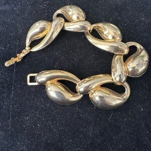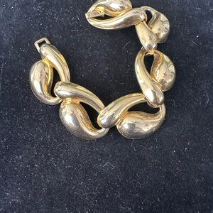 Elevate your style with this vintage gold chain bracelet, a timeless piece that adds a touch of sophistication to any ensemble. Crafted from gold tone metal, its elegant design is perfect for both everyday wear and special occasions, from casual brunches to evening soirées. The secure clasp ensures it stays in place, offering both beauty and peace of mind. This pre-owned treasure carries a unique charm, making it a must-have addition to your jewelry collection.