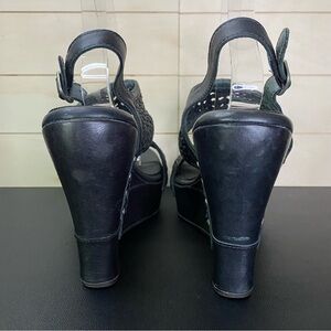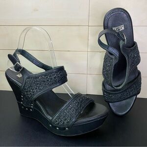 UGG Asia Platform Wedge Sandals Women's Size 9.5 Shoes Black Leather Weave