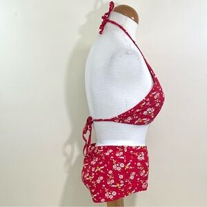 Two pieces set floral print swimsuit, tie back halter top and shorts style bottom both size medium.