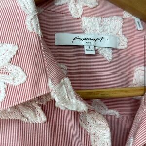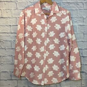 Foxcroft Pink and White Casual Button Down Shirt with Floral Pattern