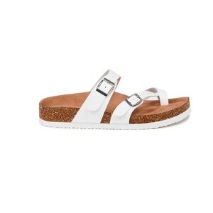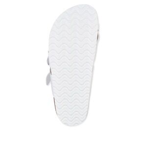Experience ultimate comfort with these Time and Tru sandals, featuring a sleek white two-strap design with adjustable metallic buckles. The contoured footbed offers excellent arch support, while the cork and leather materials ensure a natural, minimalist look perfect for casual outings.