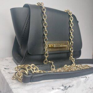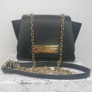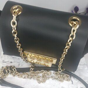 ZAC POSEN Black Purse Mini Crossbody EARTHA Designer Leather Long Gold Chain EUC