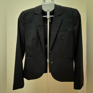 Chic black jacket by Bebe. Sleek vintage down/feather jacket with rabbit fur collar and trim. Hook & eye closure. Fitted and short.