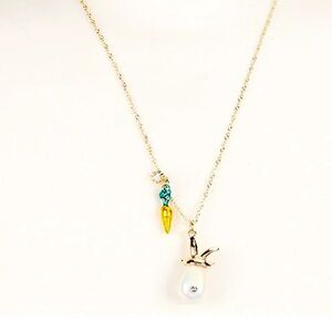 New Betsey Johnson Pearl Critters Bunny Short Pendant Necklace