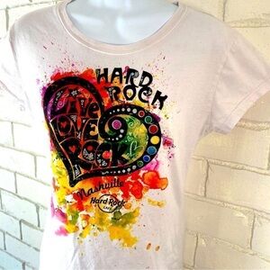 Classic white tee with Hard Rock Cafe logo. Soft cotton material. Juniors fit.