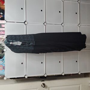 Sleeveless dress by Enfocus Woman size 18W. Green top with embroidered lace overlay and metallic thread woven throughout. Black skirt that is draped in the front. Material is stretchy. Approximately 43 inches long. Excellent condition.