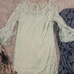 All in great condition! Varying sizes! Orange romper is a small, tie dye dress doesn’t have a size tag but would fit large to XL, mint lace dress fits medium to large, and navy lace up Mark brand dress is a medium