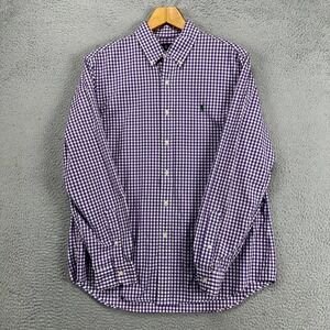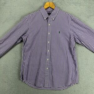 Ralph Lauren Adult Mens Button Down Shirt Large Purple White Gingham Check Pony