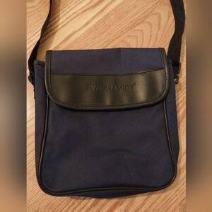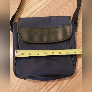West Marine navy and black binocular bag. Adjustable strap and soft lined interior. Can be used as a crossbody.