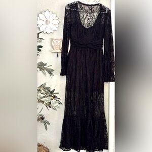 Shyanne Elegant Western Black Lace midi Dress | Size: S | Color: Black