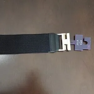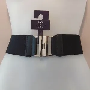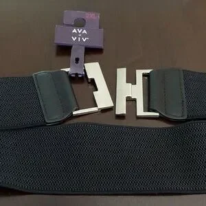 Ava & Viv Black Elasticized Belt w/ Silvertone Interlocking Closure Size 2X NWT