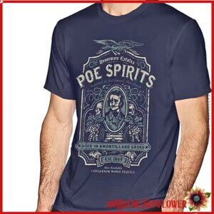Poe Spirits NWT 100% Quality Cotton Blue Sage Tan Double Stitch Tee