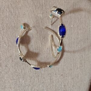 Elegant hoop earrings with blue and silver accents. Perfect for any occasion.