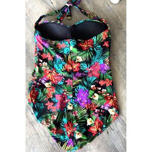 NWOT Catalina Women's XL 16-18 Armpit to AP - 16" Length - 24" Twist Front Padded Cup Ruched Floral Tropical Swimsuit Smoke Free Home