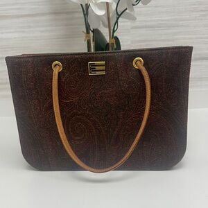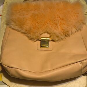 This coach bag is in great condition. The trim is a chocolate color. Zippered compartment on the front. Crossbody strap is in great condition. Interior is excellent. A great bag!