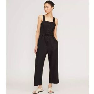 EVERLANE The Linen Picnic Jumpsuit Black Sleeveless Button-Up Size 8