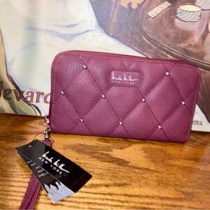 Great bag will go to all the places you go. Easy to care for olive green nylon. Zipper closure. 2 way spade lining. A few small spots.