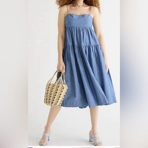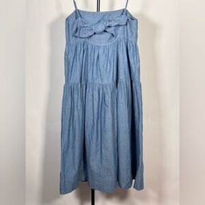 special or otherwise, in this tie-back, A-line dress. It's crafted in our comfy chambray cotton that's not too light and not too dark (so it goes with everything). Plus, it's made with organic cotton that is grown without chemical fertilizers and pesticides from nongenetically modified seeds.