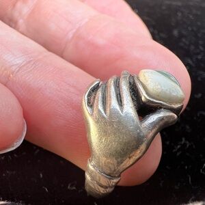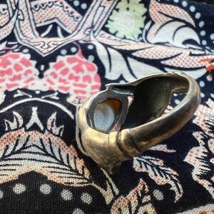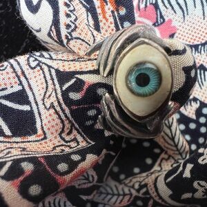 Unique silver ring featuring a captivating eye design. Perfect for adding a touch of intrigue to any outfit.