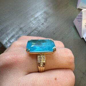 Color Changing Stone - Blue Topaz to Rhodolite with Gold Plating