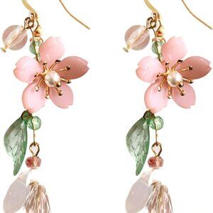Product details Material Other Metal type Copper Back Finding French Wire Earring design Dangle Gem type No Gemstone About this item cherry blossom earrings: unique design, exaggerated but not heavy, very spring and summer earrings, very suitable for outings pink flower earrings: alloy and acrylic material, durable;Some people think the dr