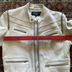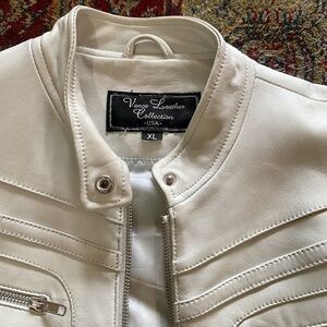 Women’s XL leather motorcycle jacket. Fits like a large. No tears or stains Stylish and classic full grain leather one interior and 4 exterior pockets. Fashion zippered sleeves.