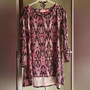 Women With Control by Renee, Size M, black and white pattern, 28" long, wide lined waistband is 3" wide, stretchy, easy care, very comfortable material. Capris