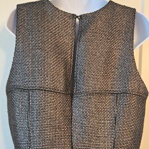 This elegant mini dress by Banana Republic showcases a sleeveless sheath design with a classic crew neck, ideal for cocktail occasions. The luxurious silver and black color scheme is enhanced by a textured fabric that adds depth and sophistication. Its fitted silhouette offers a flattering look, making it a perfect choice for a night out.