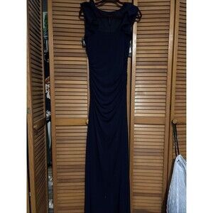 Elevate your eveningwear with this stunning navy blue gown from Laundry by Shelli Segal. The maxi style dress is made of polyester and features a beautiful eveningwear look that is perfect for any party occasion. This vintage 1990's piece is a true gem and is bound to make you stand out in any crowd.