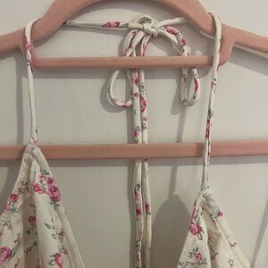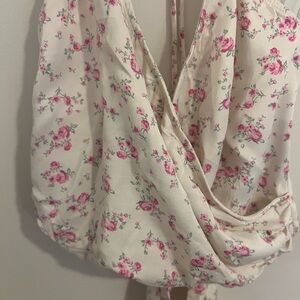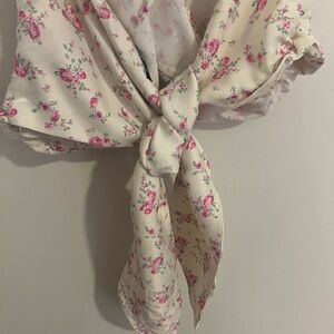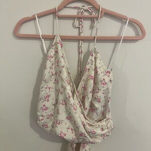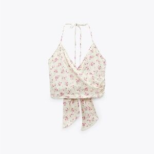 ZARA CREAM FLORAL TIE HALTER NECK SATIN EFFECT CROP TOP SIZE LARGE