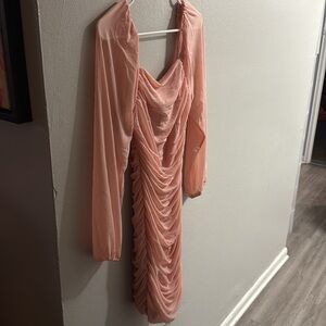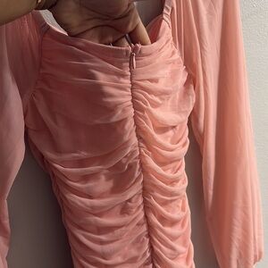 Pink Ruched Bodycon Dress with Bishop Sleeves