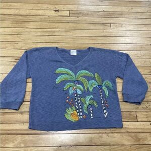 STICKCHICS Crop Knit Sweater Women One Size Made USA Hand Painted Palm Tree Isle