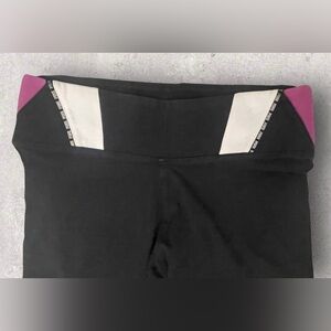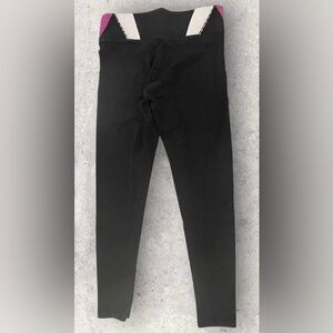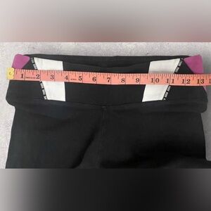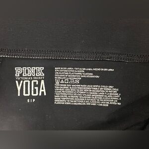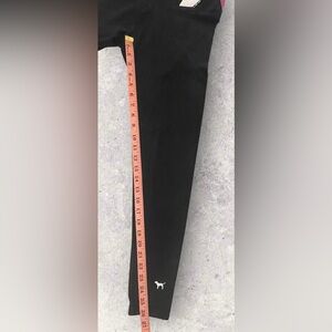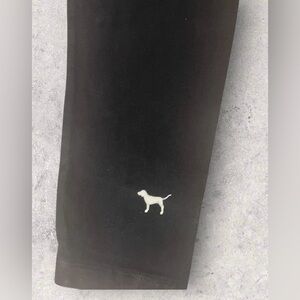 Stylish PINK Victoria’s Secret black yoga leggings featuring pink and white accents. Perfect for workouts or casual wear.