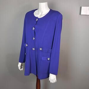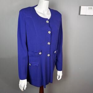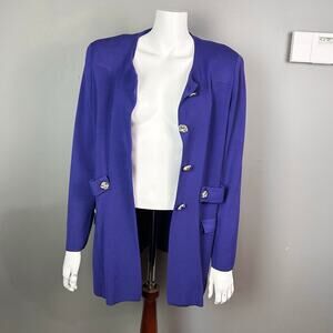 Misook jacket sweater cardigan XL blue office coastal brass buttons