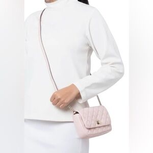 Kate Spade NWT Natalia Quilted Smooth Leather Turnlock Crossbody Rose Sm…