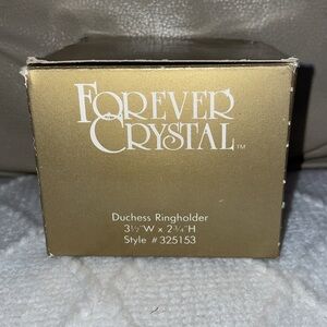 NIB FOREVER CRYSTAL. Elegant crystal ring holder with a clear design, perfect for organizing your jewelry. 24% Lead Crystal. 3.5” diameter 3” height. Smoke & pet free home.