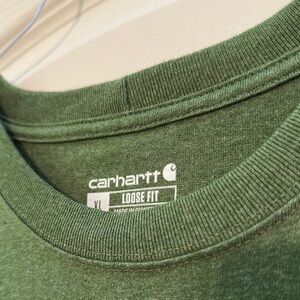 Carhartt long sleeve shirt in green. Features a chest pocket.