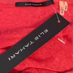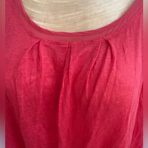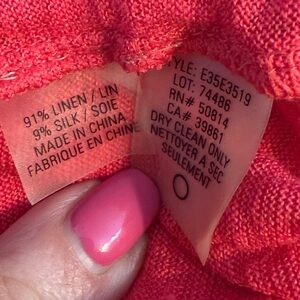 Mostly linen, semi sheer, and lightweight. Great color to show off a tan. For those who want to avoid the sun, this lightweight fabric offers some protection. Very loose elastic bottom