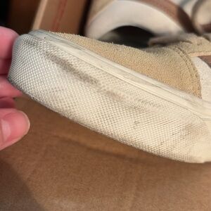 Stylish Vans X Madewell Old Skool cream sneakers with tan accents. Perfect for casual wear. Priced low because of scuffing (see pics).