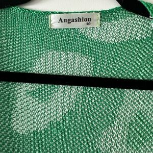 Stay stylish and cozy with this green and white leopard print sweater. Perfect for adding a pop of color to your wardrobe.