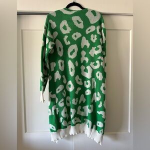 Green and White Leopard Print Women's Sweater