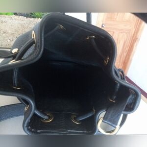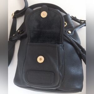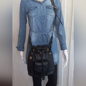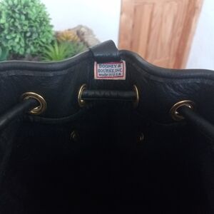 Dooney & Bourke Black Vachetta, Italian Pebbled soft Glove Leather, "Suspender Style" Drawstring Crossbody Bag.